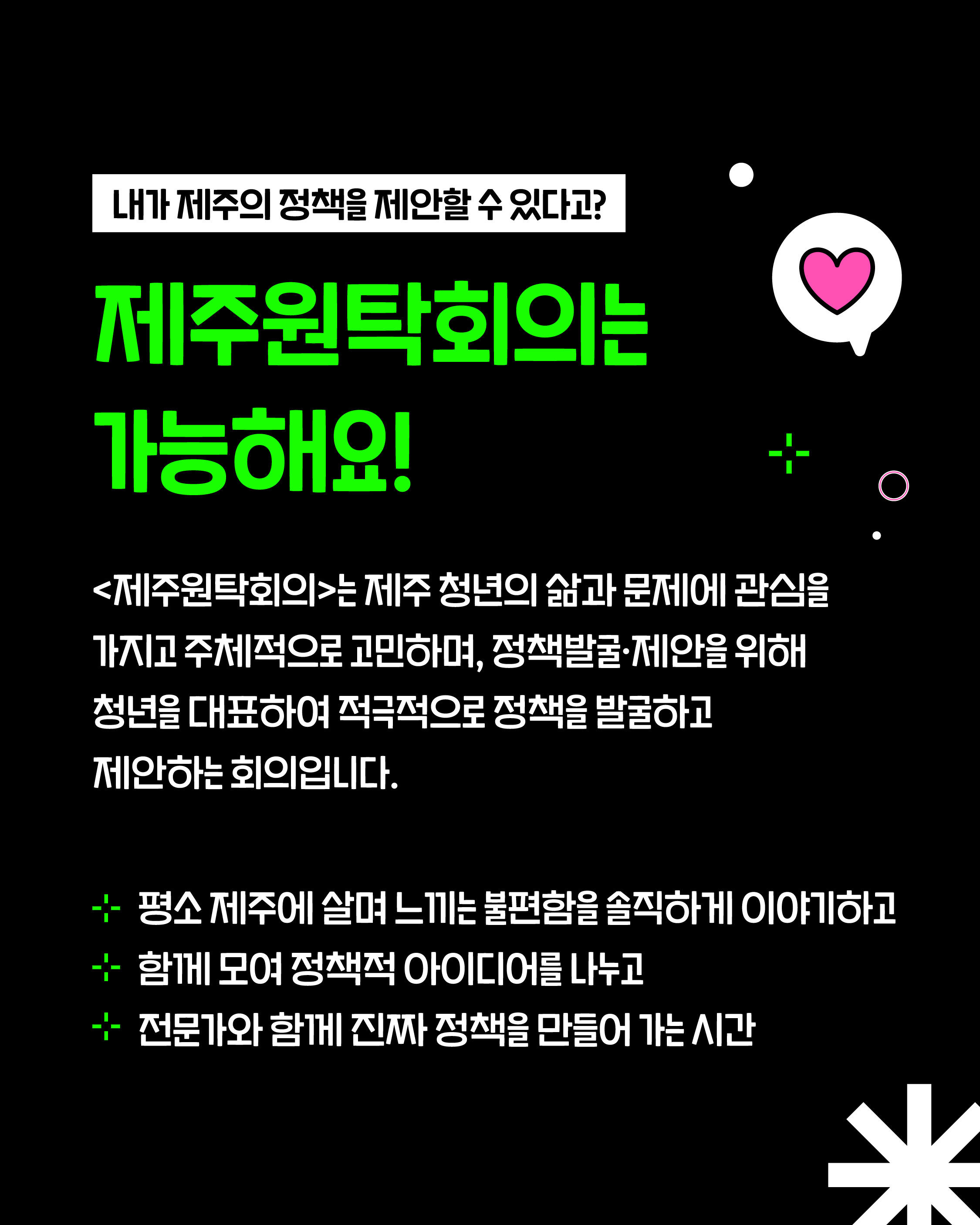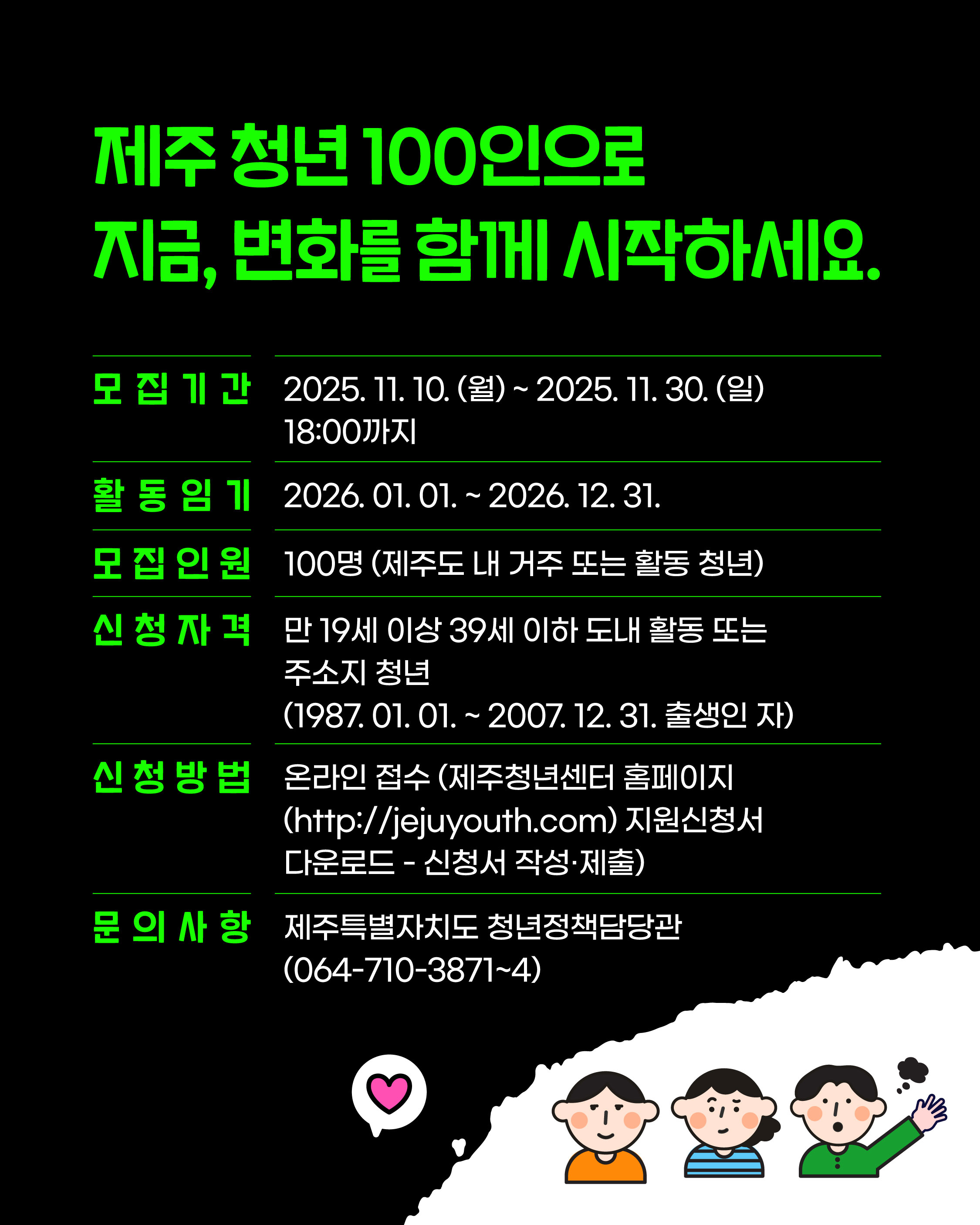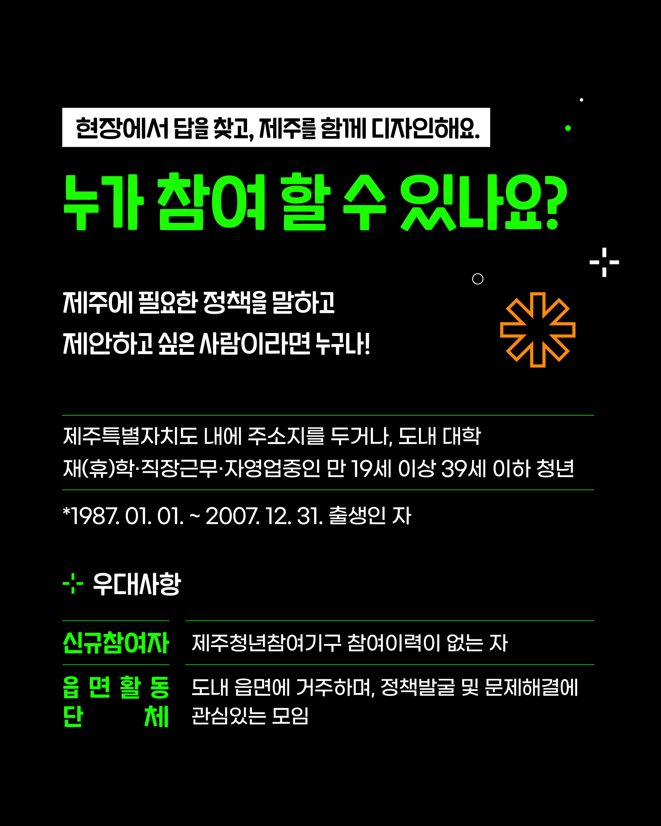✔ 제주에 사는 청년이라면 누구나 참여 가능