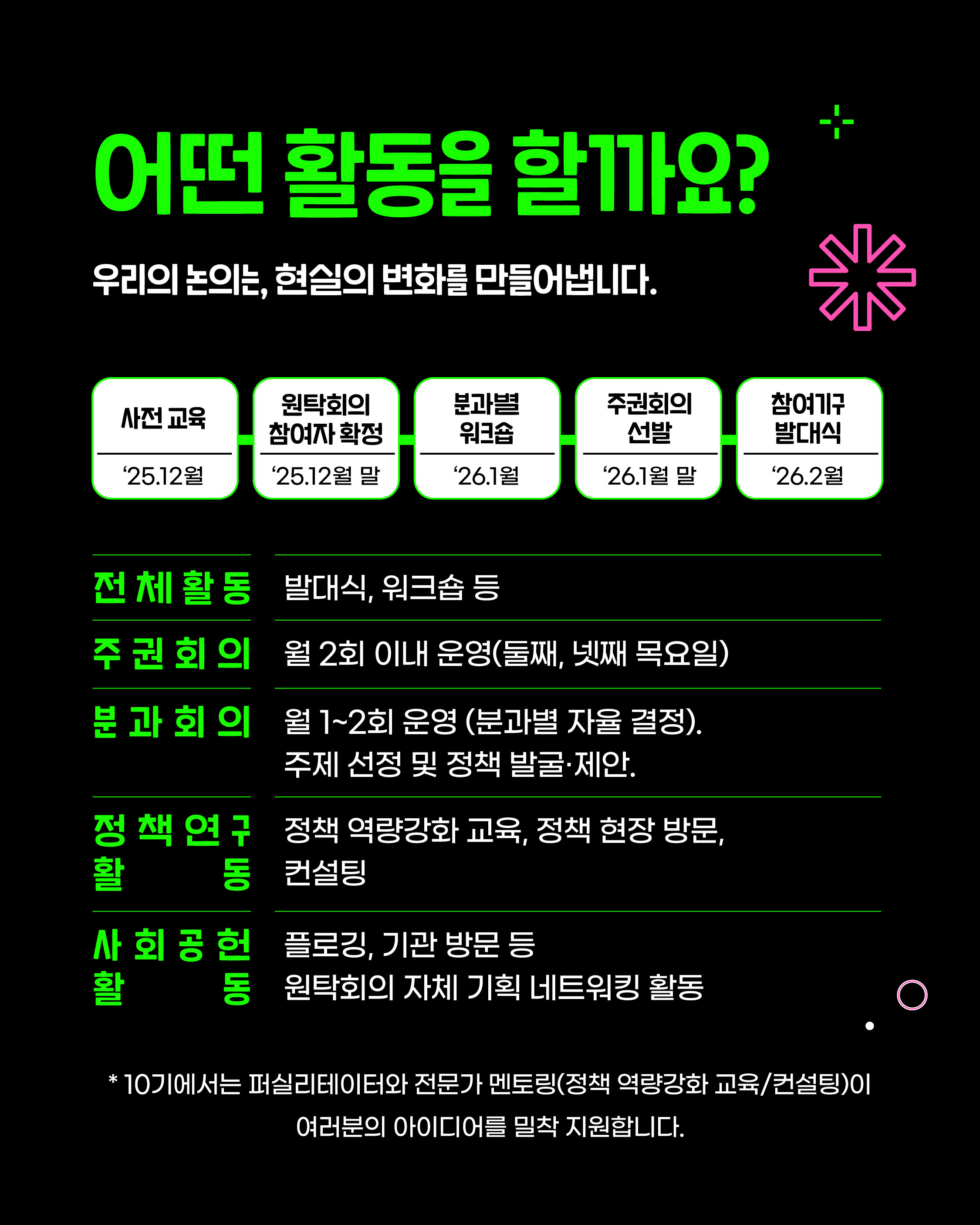 ✔ 1년간 정책 발굴·제안 + 전문가 멘토링