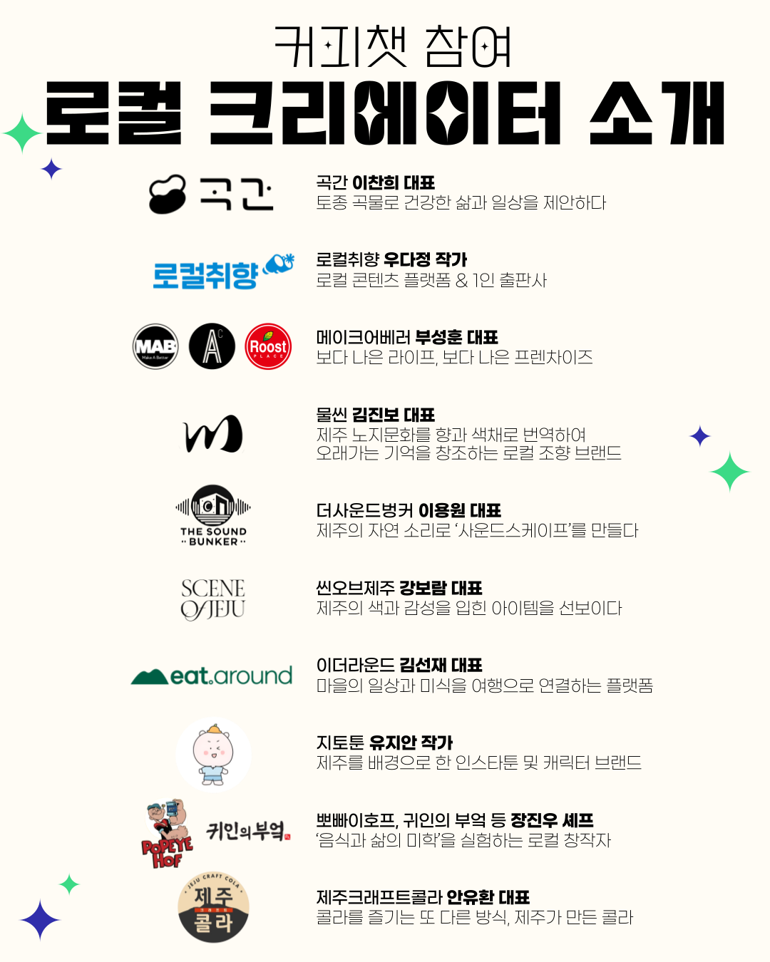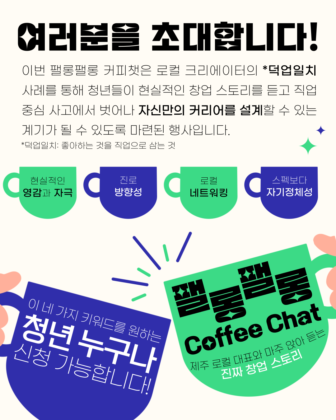 제주에서 진짜로 활동 중인 크리에이터들과 직접 커피챗을 나누는 자리예요.